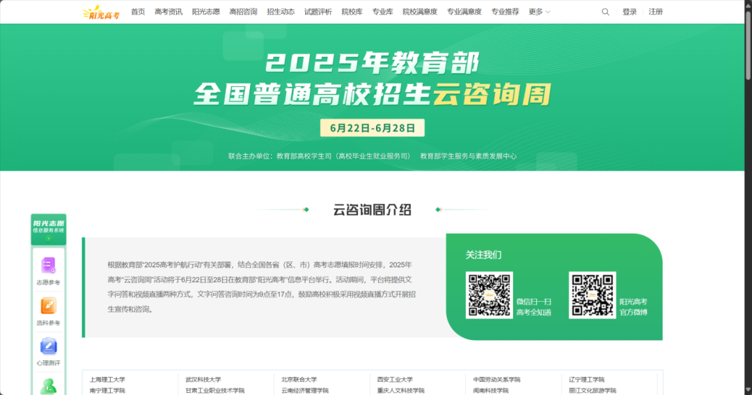 网站:教育部全国普通高校招生云咨询周_阳光高考