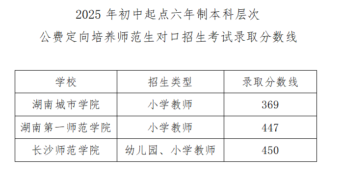 2025年初中起点六年制本科层次公费定向培养师范生对口招生考试录取分数线