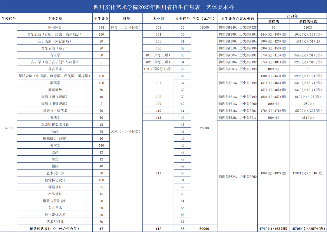 四川文化艺术学院创办于2001年,2006年经教育部批准为面向全国招生的大学本科层次的独立学院,2014年经教育部批准转设为独立设置的民办普通本科学校,定名为四川文化艺术学院。2016年被四川省教育厅列为四川省本科院校整体转型发展改革试点院校,并当选为“四川省应用型本科高校联盟”首届理事单位。