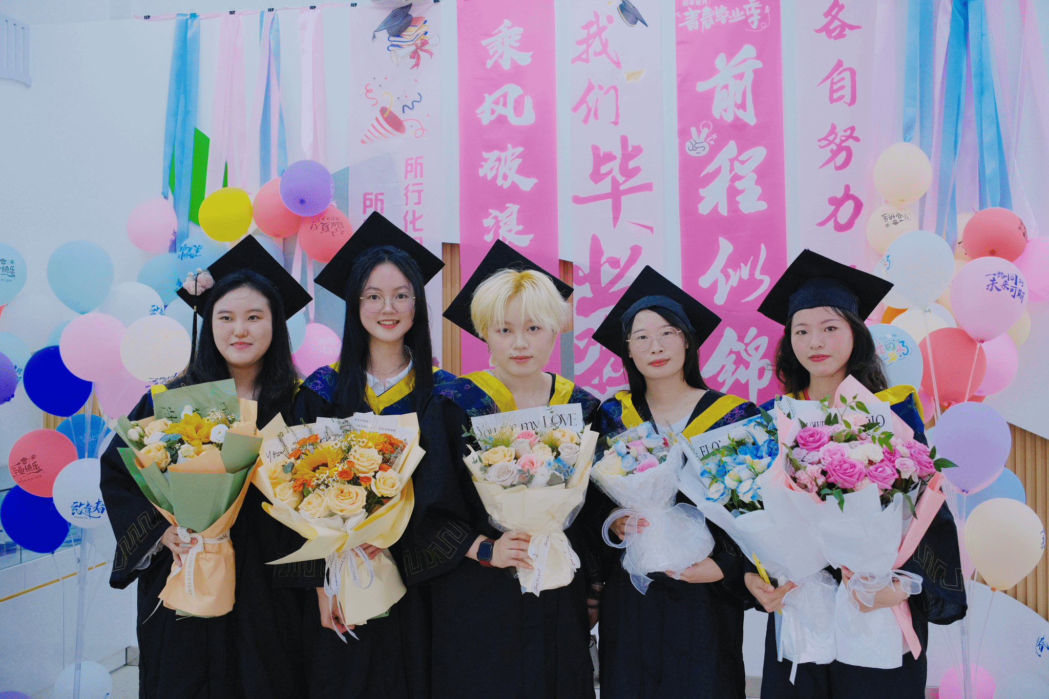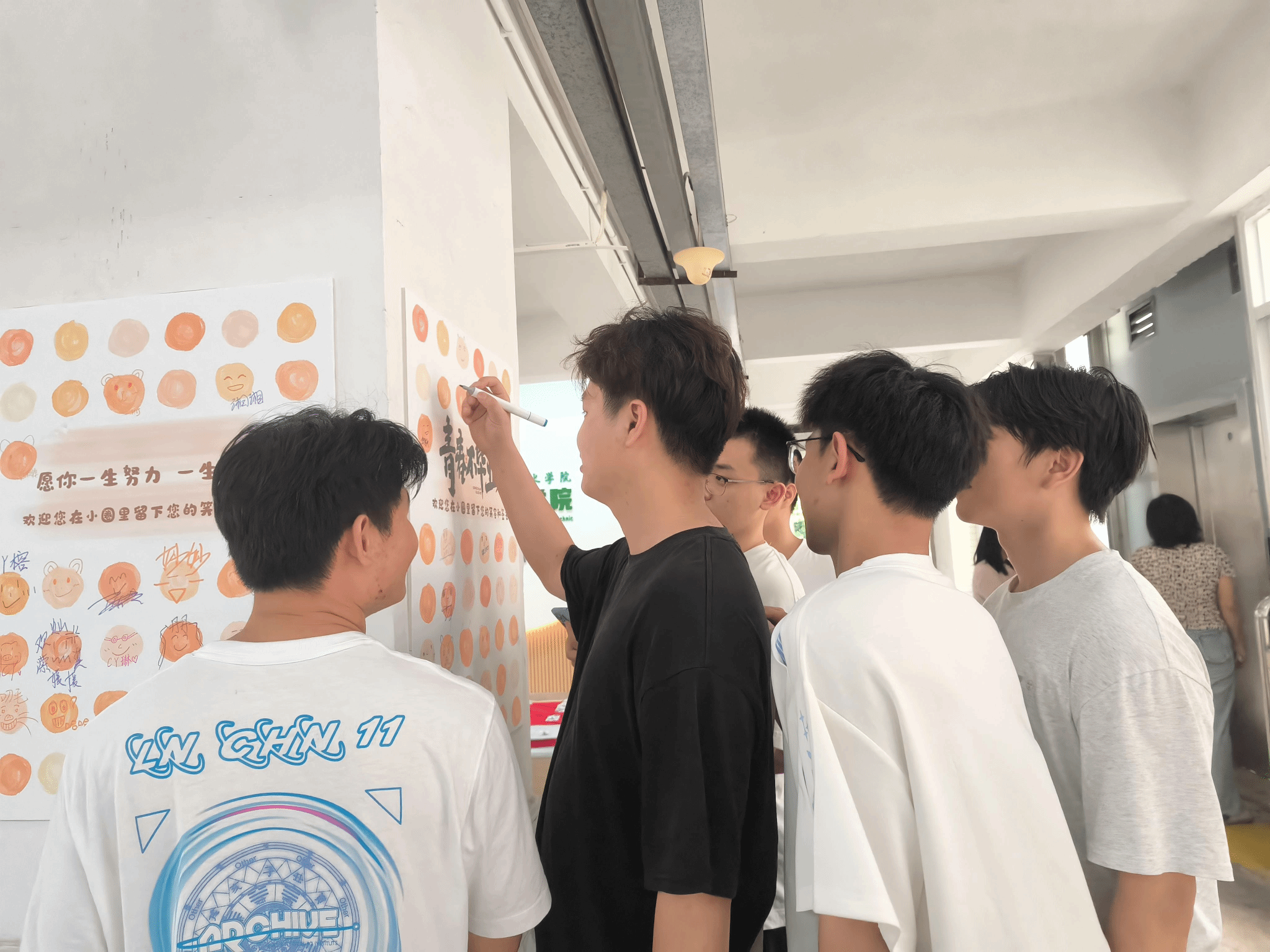 活动以“美”为媒,构筑沉浸式育人场景。活动设置“致青春”笑脸签到墙,毕业生们用马克笔写下笑脸及名字。这些笑脸,或俏皮,或自信,或带着一丝离别的感伤,共同汇聚成一片灿烂的笑脸星河,无声地诉说着同窗情谊和对母校的不舍,也定格了青春最本真的快乐模样。