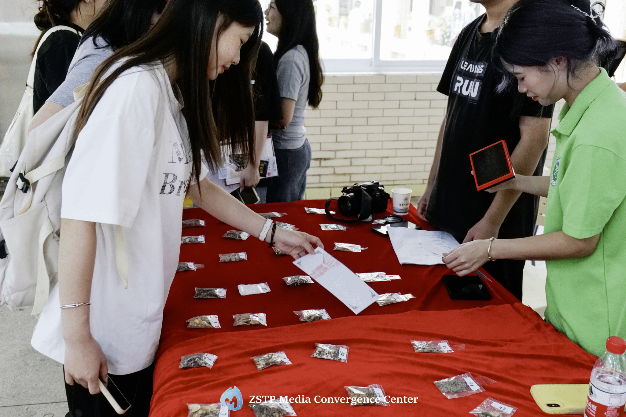 活动以“大美育人”理念串联专业特色体验,由学院团委学生会联合百草润心工作站、芮艺匠心美育工作站共同举办。活动现场设置多个互动环节,巧妙融入专业特色。“谜趣科普”展区悬挂着百余条谜面,谜底涵盖食品、药品、化妆品等知识,毕业生们在竞猜中巩固专业素养;“本草鉴真”展台陈列红花、三七、金银花等50余种中药饮片,毕业生们通过看形状、闻气味、辨纹理,重温中药实践技能。