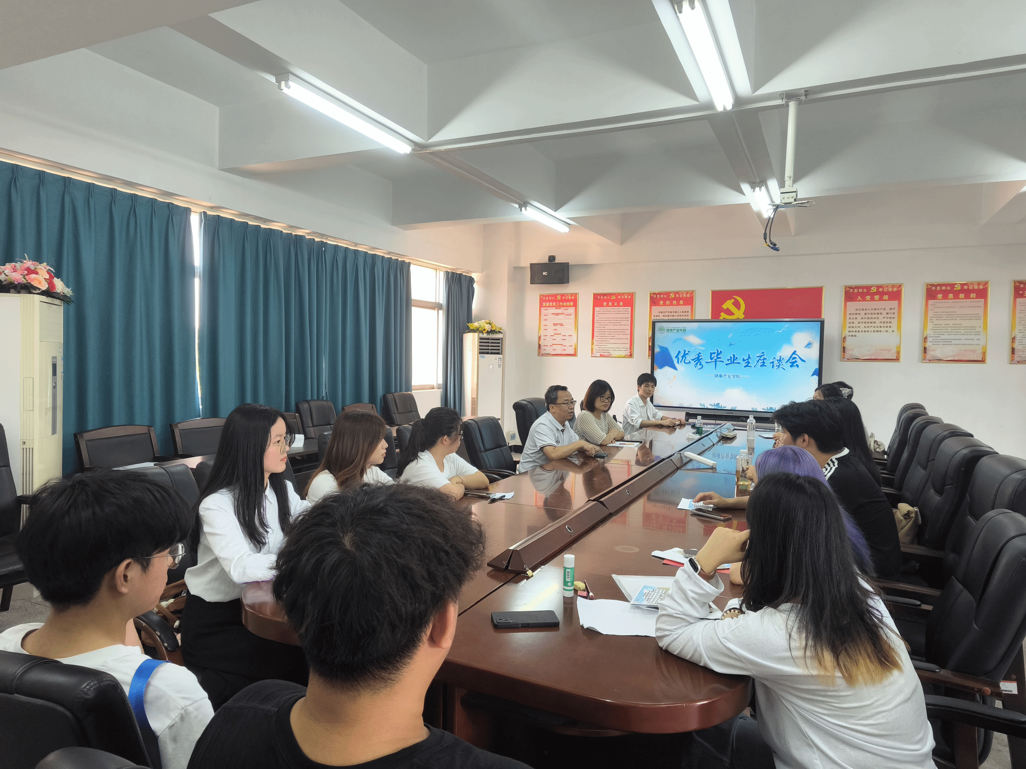 在座谈会上,健康产业学院党总支代理书记李小玉、党总支副书记叶仙红、辅导员刘占与20余名优秀毕业生代表共话成长。来自医药、化妆品、食品等行业的毕业生结合自身经历,分享了从课堂到职场的蜕变感悟。