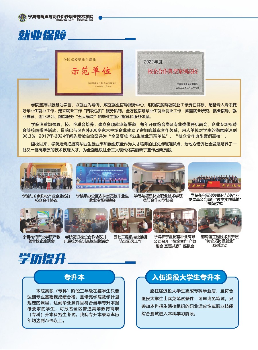 宁夏葡萄酒与防沙治沙职业技术学院2025年招生简章