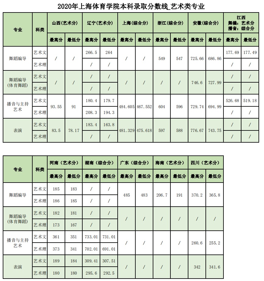 2020年本科录取分数