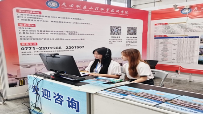 为方便考生、家长了解高校信息和招生政策,帮助考生更好地填报志愿,自治区招生考试院于6月26日在南宁国际会展中心举办2025年广西普通高校招生咨询会,向考生和家长免费提供普通高校招生咨询服务,我校积极响应并安排4位老师、3名学生参与,为考生和家长提供全方位招生咨询服务。