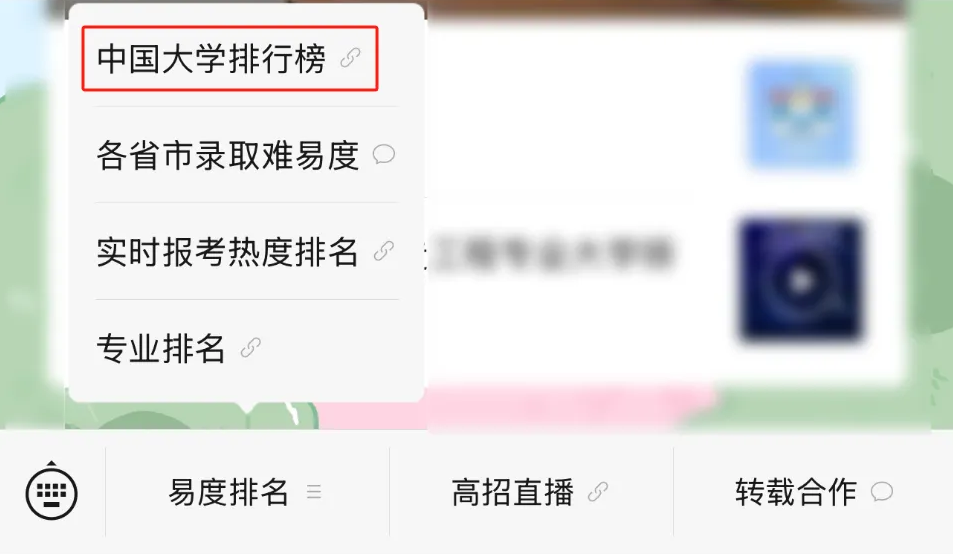 1、点击菜单栏【易度排名】-【中国大学排行榜】。