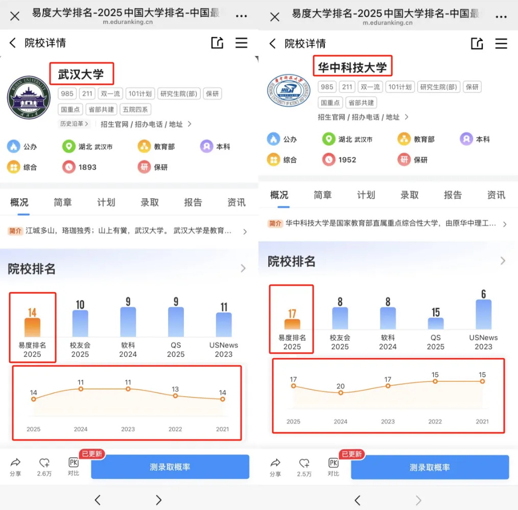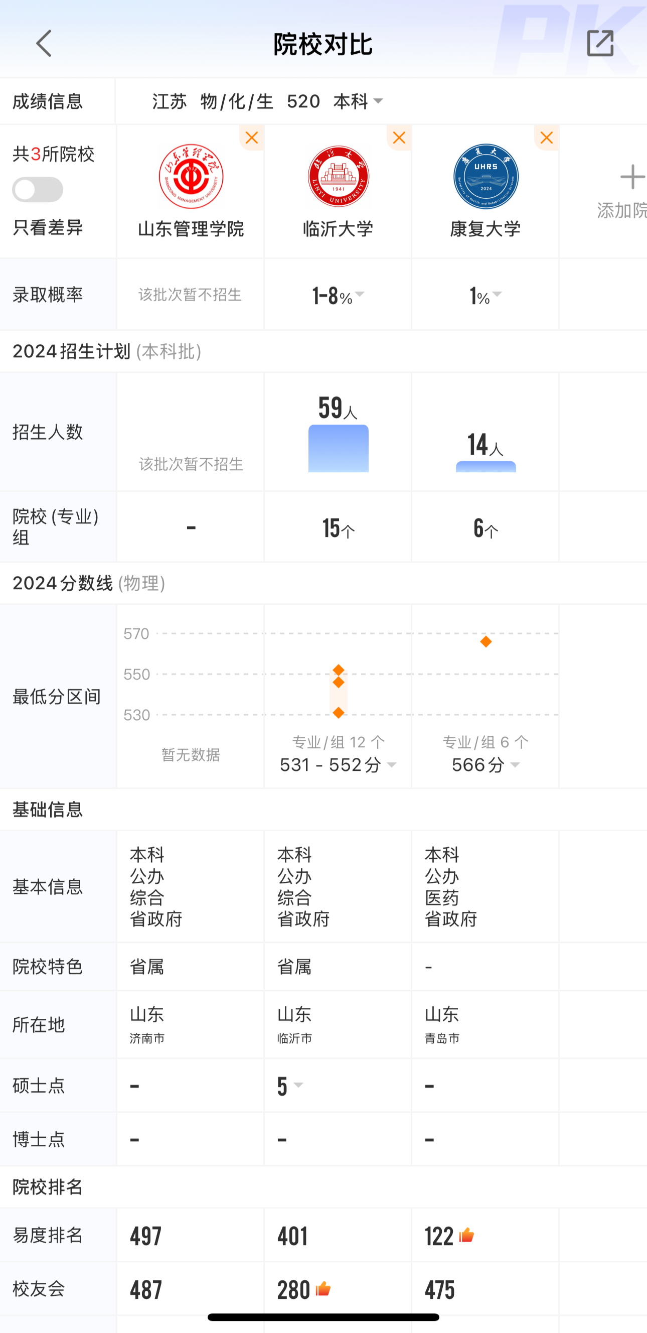 想具体对比上述大学的录取概率、招生情况等多维度信息,可以使用优志愿APP,使用院校对比功能,能帮助你了解更多院校情况,找到适合自己的院校与专业。
