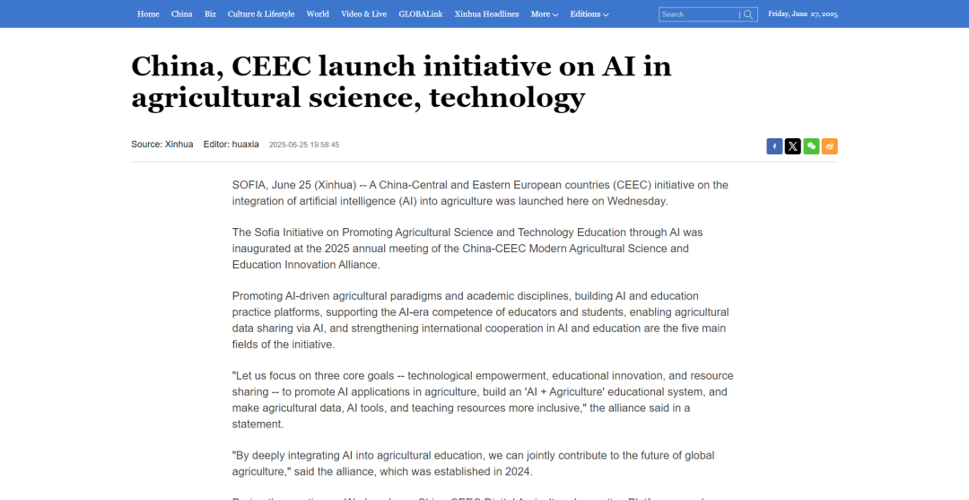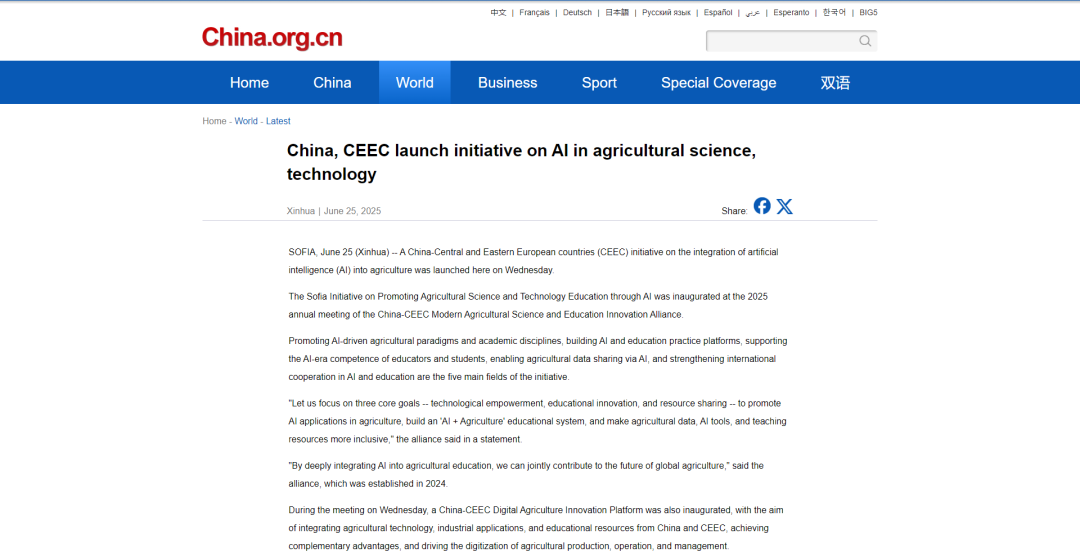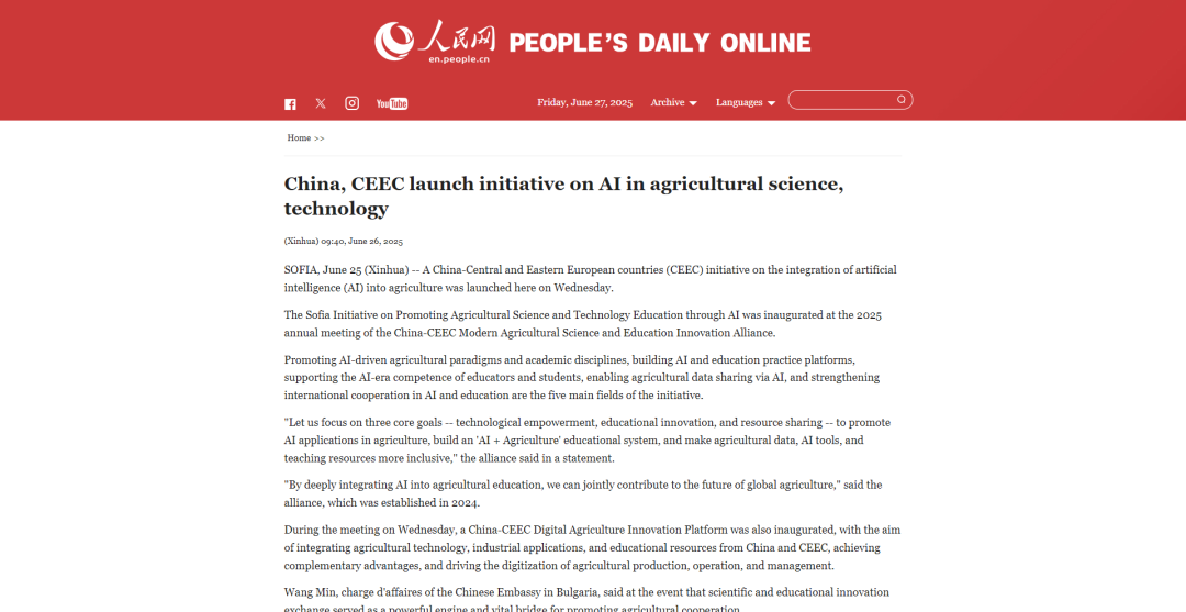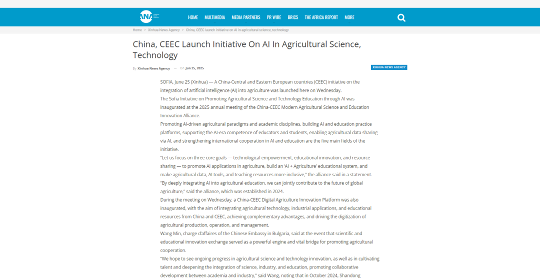 本次年会以“深化科产教融合,共谋可持续发展”为主题,汇聚了来自中国与中东欧国家的政府部门、高校、科研机构及知名企业的140余名代表,围绕农业科技创新、智慧农业、可持续农业发展、青年科学家培养等关键领域,探索更广阔的合作空间和更有效的合作模式,共同谋划现代农业科教合作新蓝图。会上,“中国—中东欧数字农业创新平台”正式成立,并发布《人工智能推动农业科技教育索非亚倡议》,北马其顿阿尔忒可持续发展繁荣研究所成为联盟新成员,山东农业大学与中国—中东欧国家农业合作促进会签署合作备忘录。