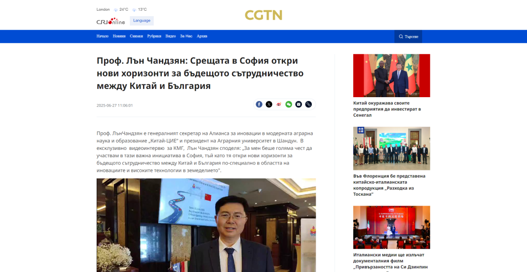 索非亚时间6月26日,“中国—中东欧国家农业合作促进联合会十周年 中国与中东欧国家合作的桥梁”国际会议在保加利亚首都索非亚开幕。冷畅俭代表学校作题为《强化高水平国际办学,服务中国—中东欧国家合作》的主旨发言,并向中国—中东欧国家农业合作促进联合会赠送中国书法作品。