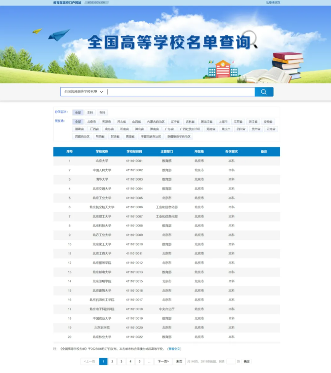 目前全国共计高等院校3167所,这些院校均在教育部政府门户网站上可以查询(点击下方“阅读原文”即可查看)。