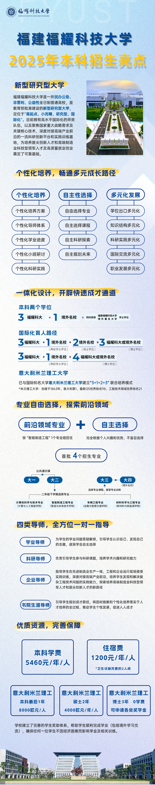 一图读懂福建福耀科技大学2025年本科生招生亮点