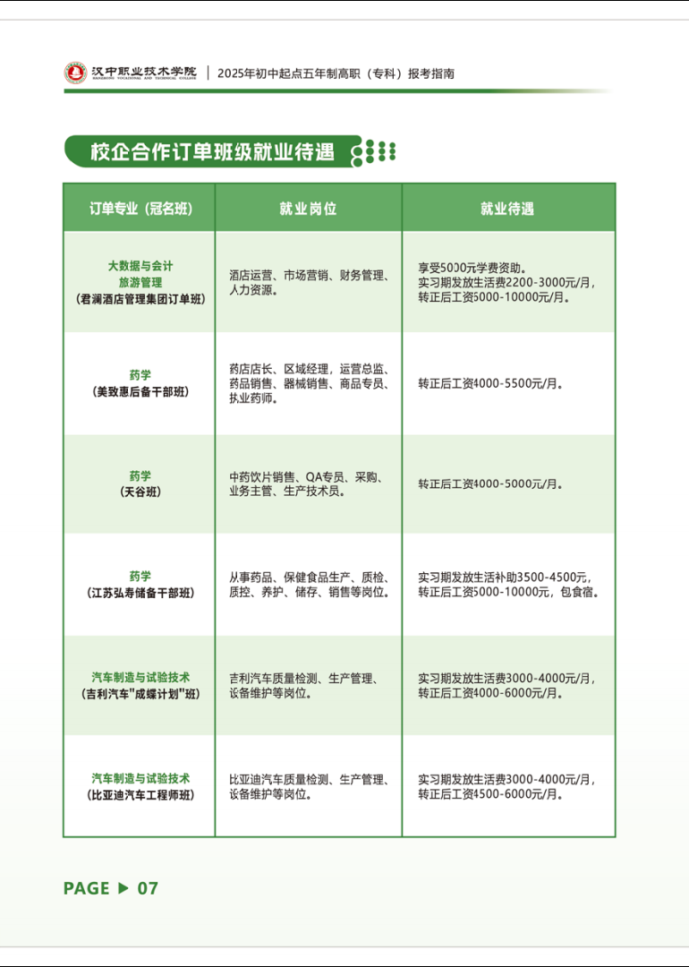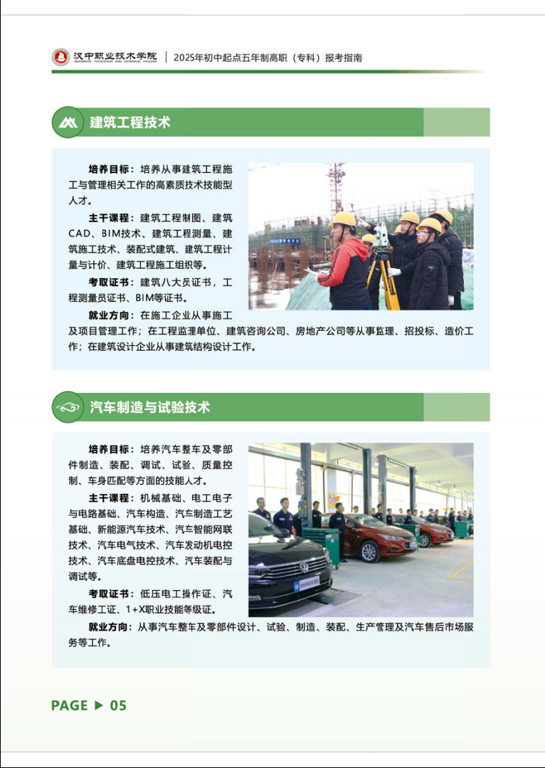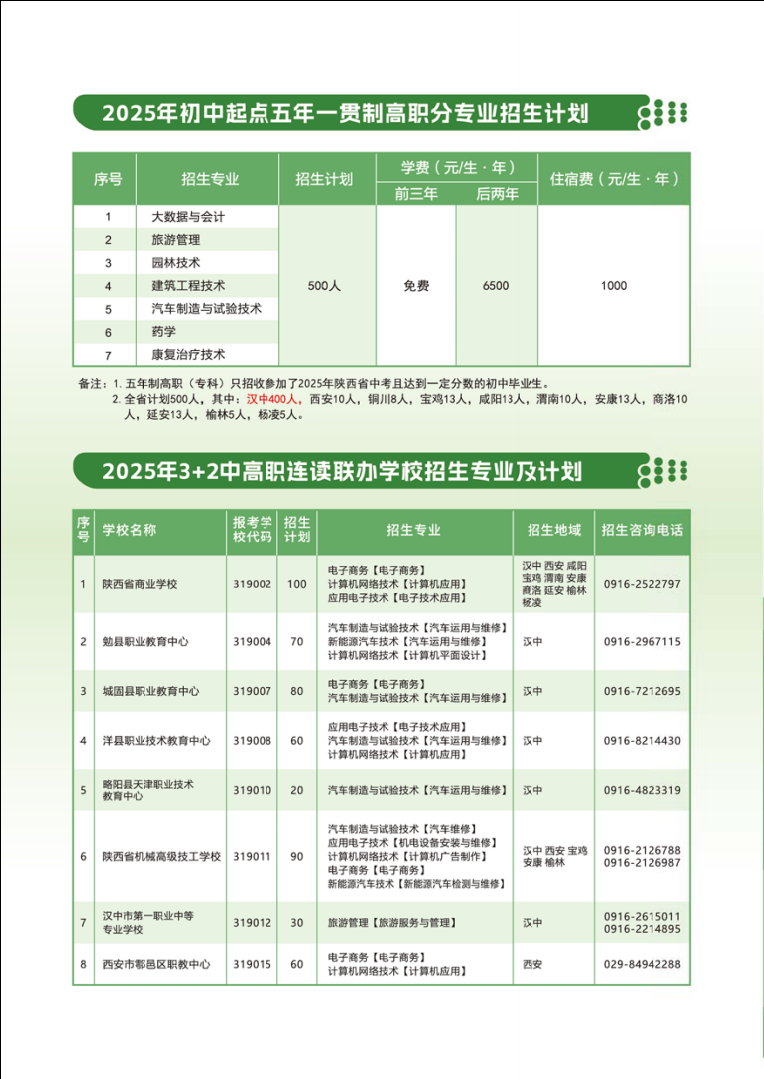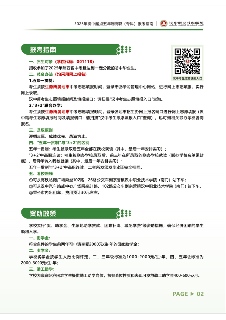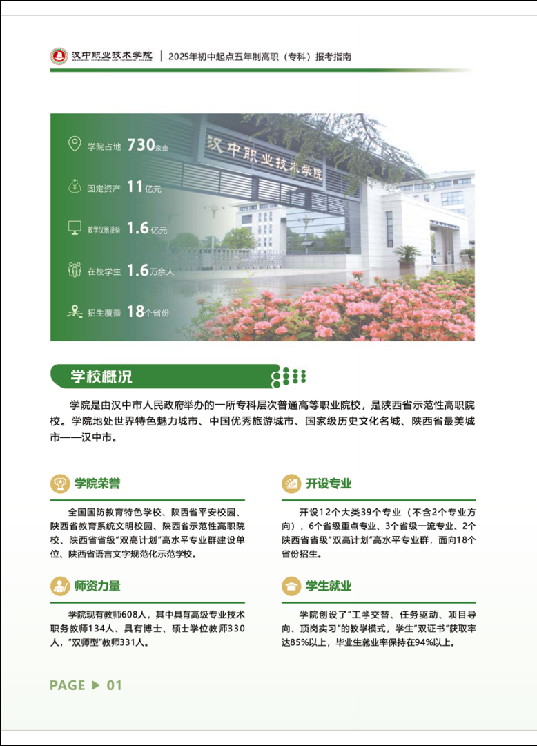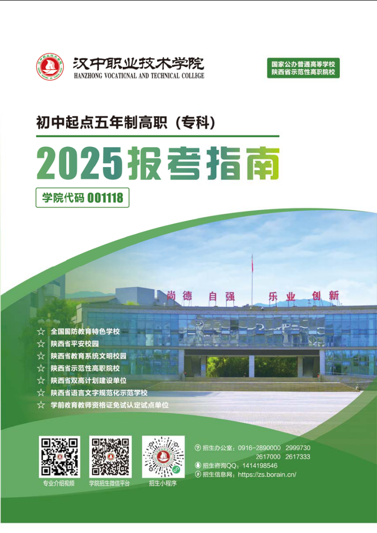 汉中职业技术学院2025年初中起点五年制高职(专科)报考指南