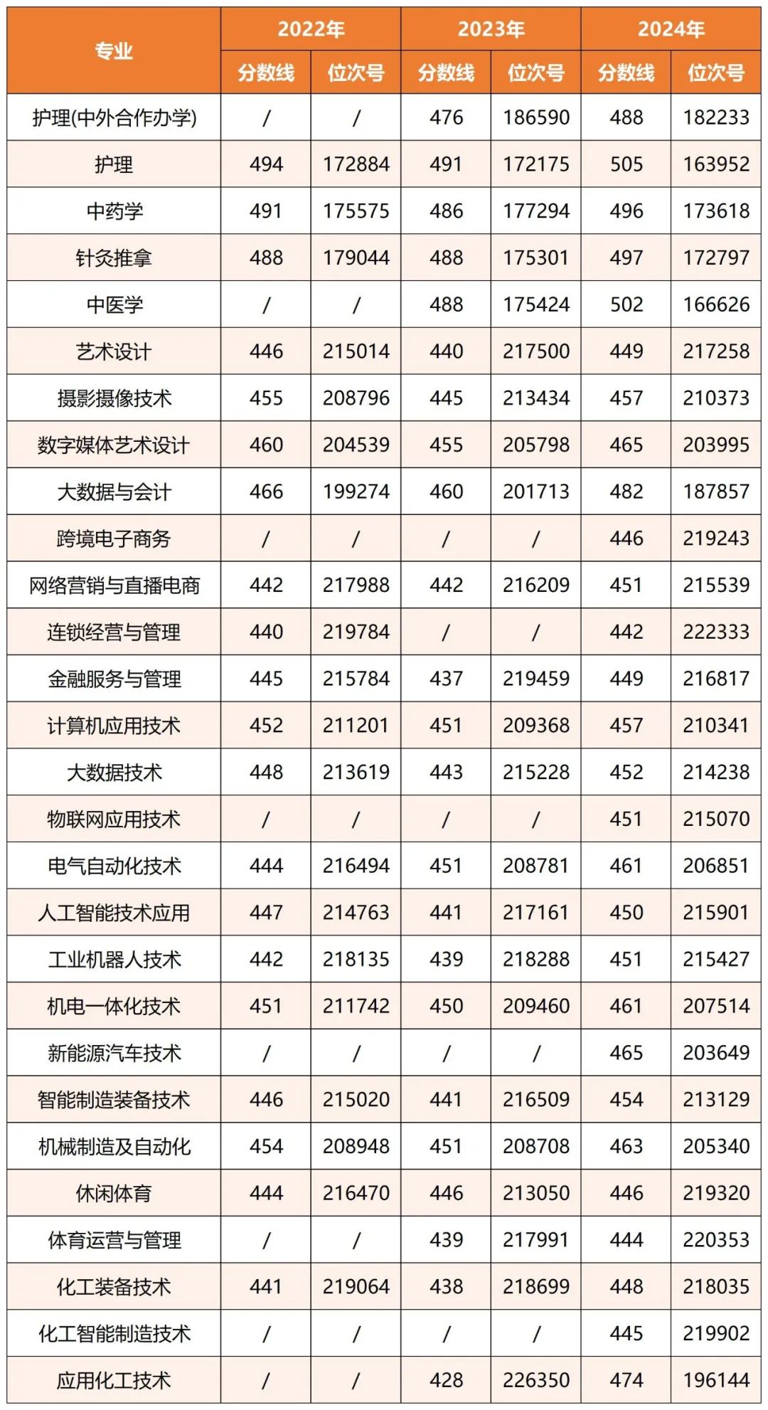 ★ 前23万名(440分左右),连锁经营与管理、机电一体化技术、智能制造装备技术、新能源汽车技术、飞行器维修技术、化工智能制造技术、分析检验技术专业录取希望大。