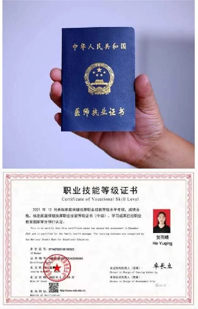 本专业学生在校期间可以考取多种1+X等级证书;毕业后,学生具有报考中医执业助理医师、保健调理师、健康管理师资格。