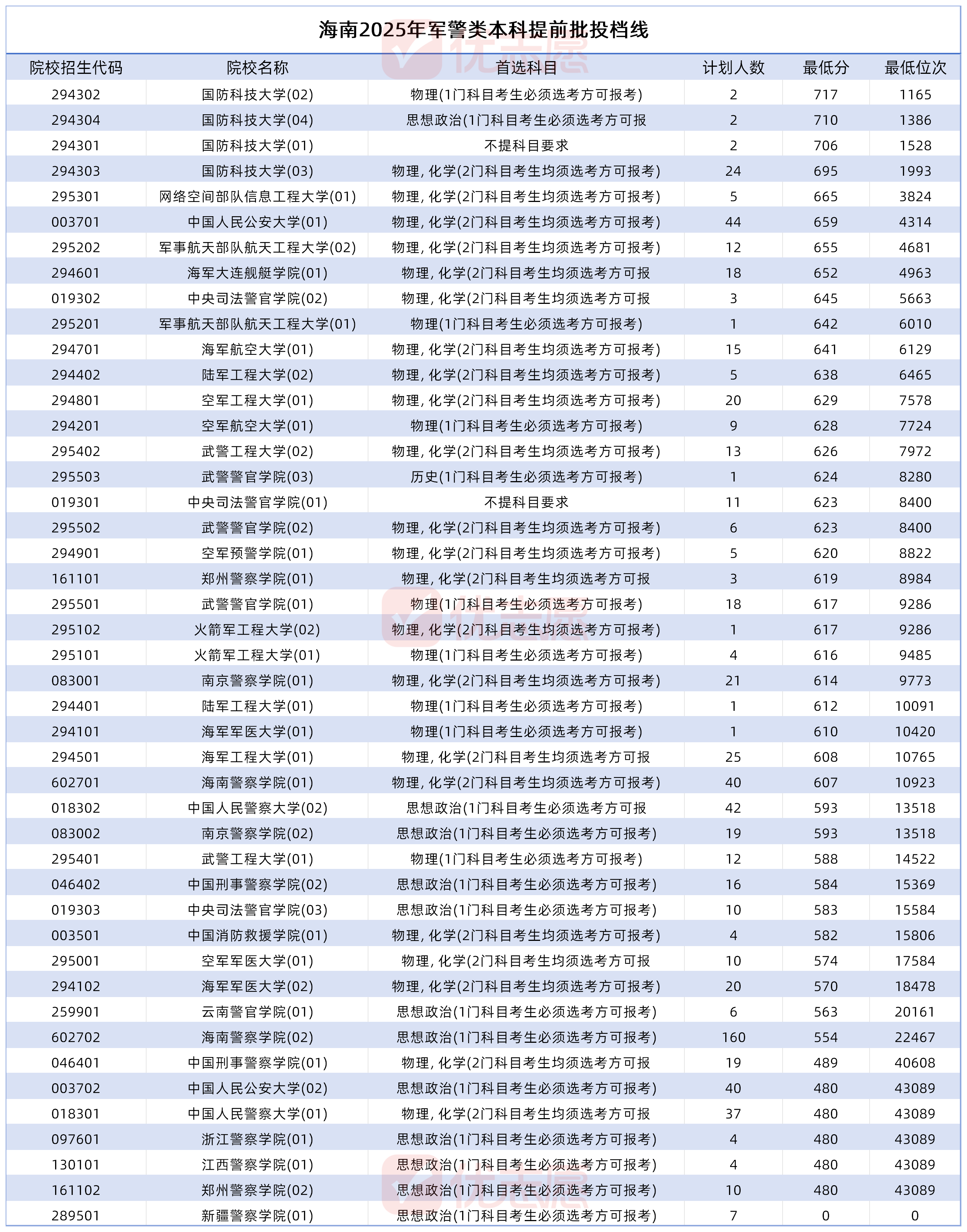 但是,需要特别注意的是,军医类大学2025年最低分数线普遍下降,比如海军军医大学、空军军医大学等,其中,海军军医大学01/02组别物理类2025年最低分都较去年大幅度下降,其中01组别更是从2024年691分下降至610分,位次下跌8000左右。究其背后原因,一方面,由于军医需要兼顾医学专业学习与军事素质学习,学习难度是难上加难;另一方面,部分高分段考生可能会优先选择地方重点医科大学,资源和就业都有政策倾斜,竞争力相对较小,所以导致军医类大学报考热度有所降低。