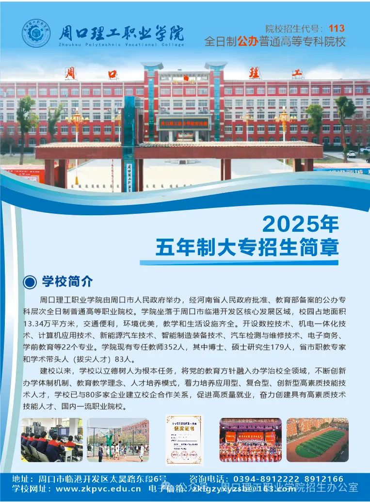 周口理工职业学院2025年五年制大专招生简章