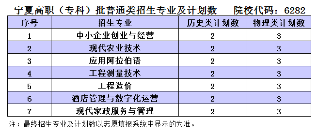 临夏现代职业学院2025年面向甘肃、青海、宁夏、新疆4个省(自治区)招生,具体招生专业及计划数如下: