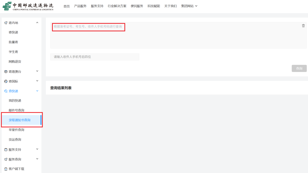 访问中国邮政速递物流官网,在首页点击 “服务支持” 中的 “邮件查询”,再点击 “录取通知书查询”,输入考生号或收件人手机号,即可查询录取通知书的邮寄状态。