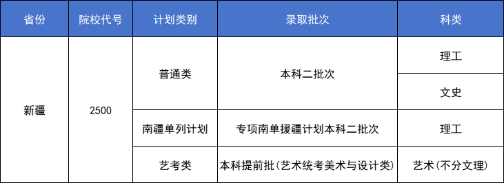 二、我校在新疆维吾尔自治区招生院校代码及录取批次