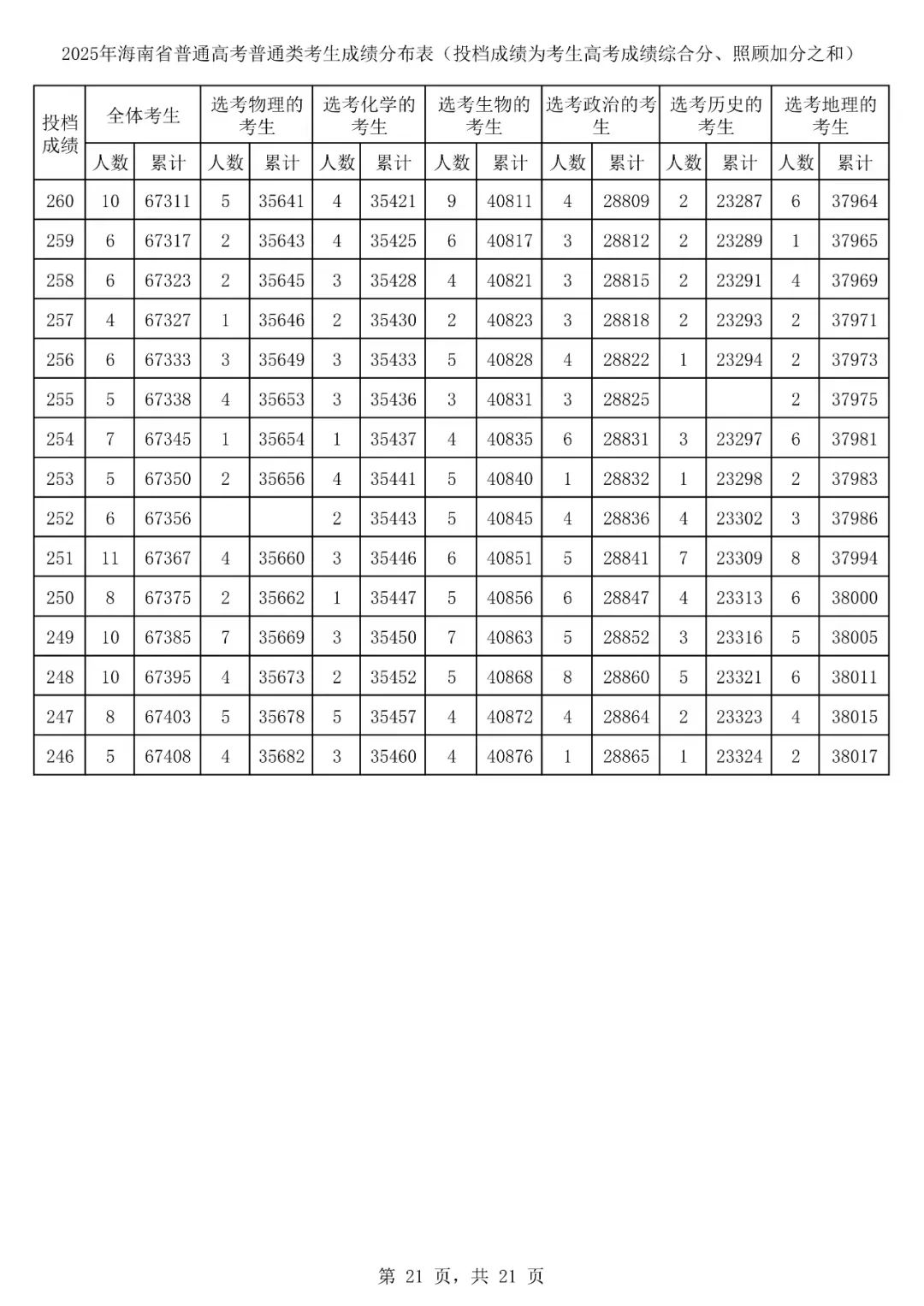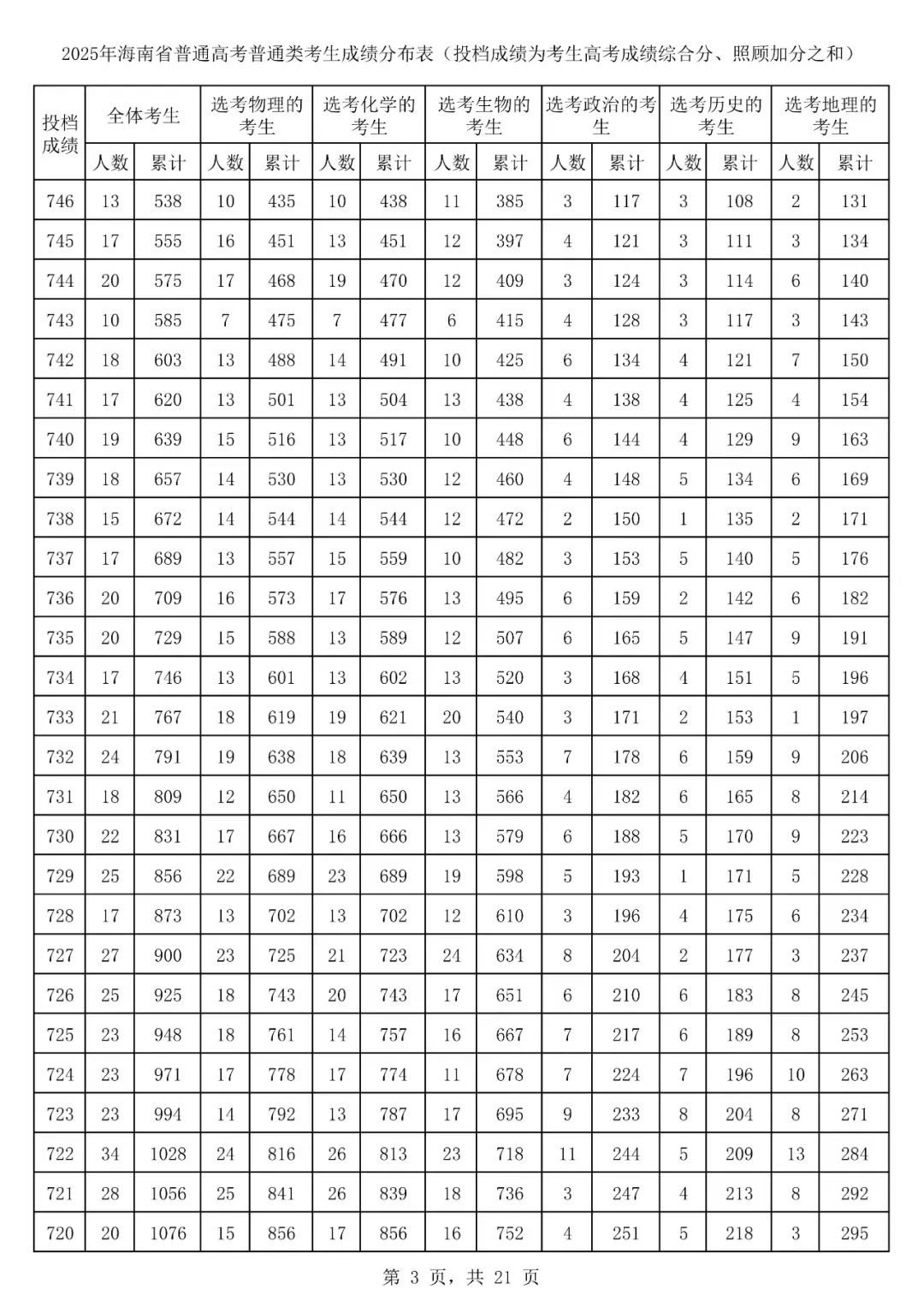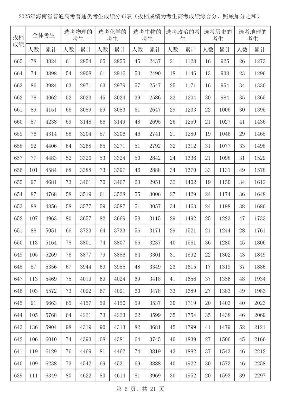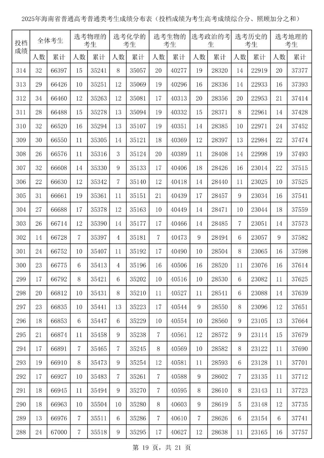 四、2025年海南省普通类考生成绩分布表(一分一段)