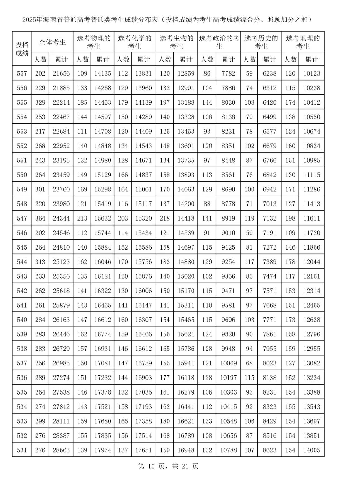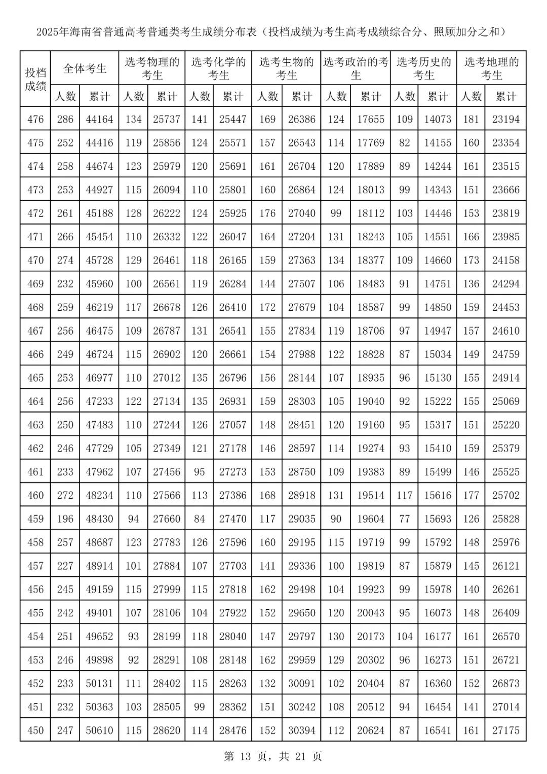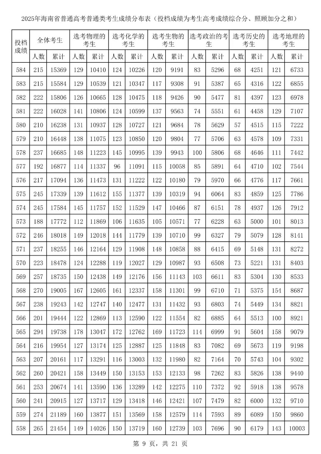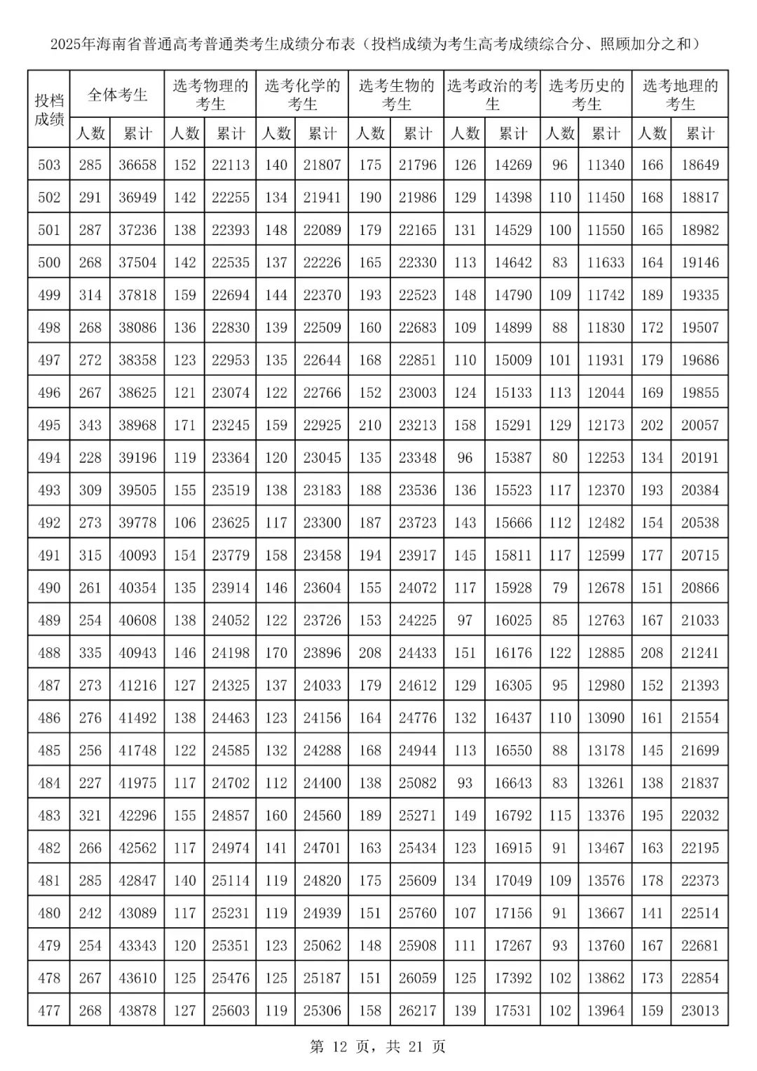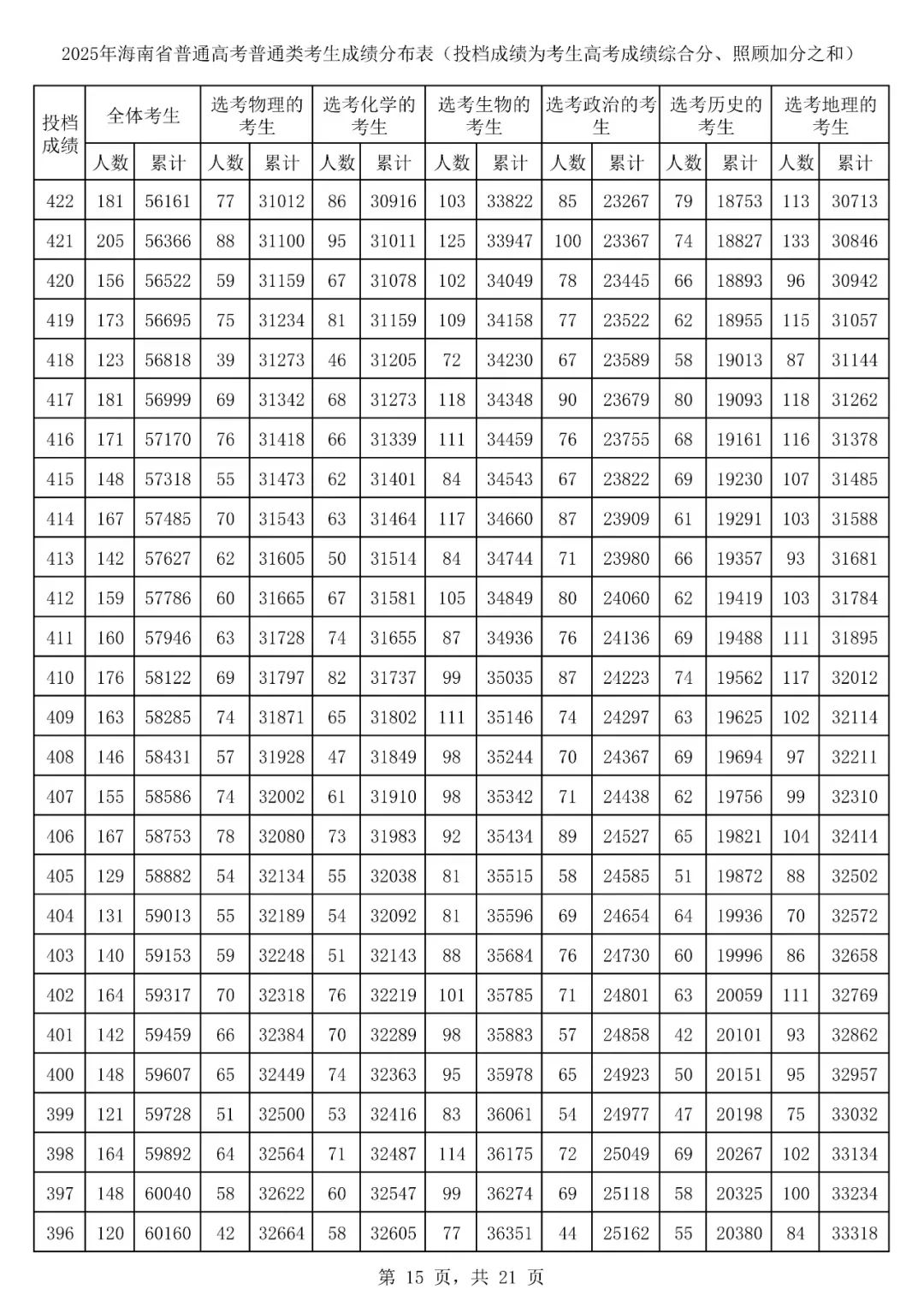 四、2025年海南省普通类考生成绩分布表(一分一段)