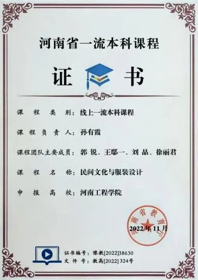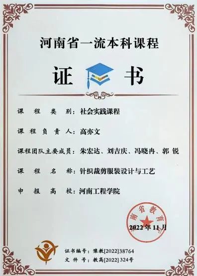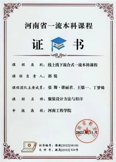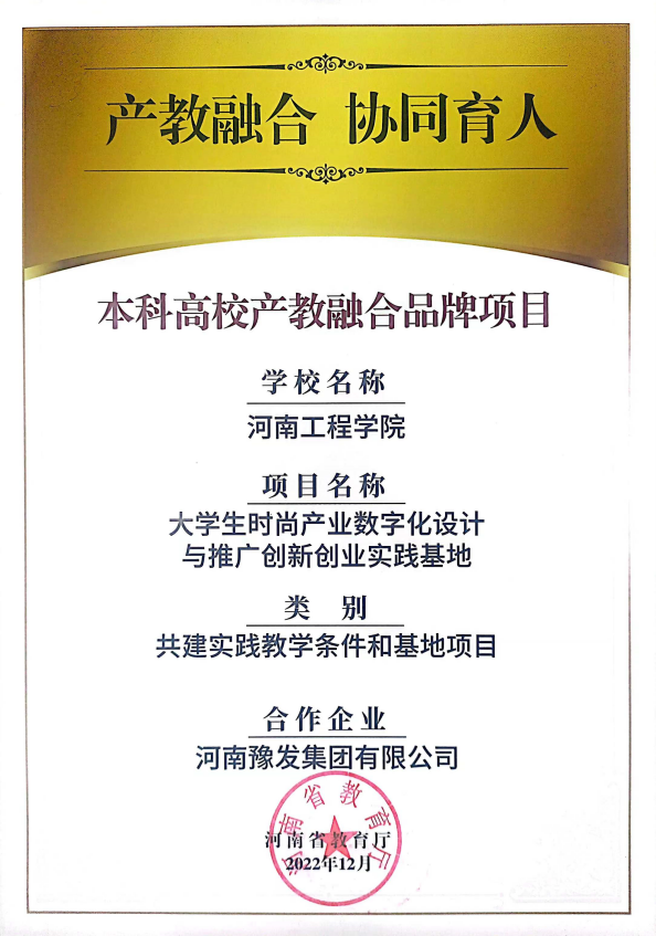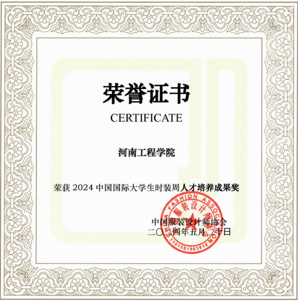河南工程学院服装学院于1984年设置服装设计专业,是河南省首批开设服装类的高等院校。近四十年的发展,形成了服装与服饰设计、 服装设计与工程、表演、软件工程(服装智能化设计)四个本科专业,其中服装与服饰设计专业为国家级一流本科专业建设点。学院拥有专兼职教师60多人,其中高级职称占35%,硕士以上学位占89%。学院坚持“服务产业链,创新专业链”,2021年联合豫发集团等企业立项建设河南省纺织服装产业学院。学院一贯重视教科研,近年来获批省级课程11门、省级虚拟仿真实验项目5 项,学科竞赛省级以上奖项200多项,毕业生中有“中国职业装十大设计师”、“中国十佳服装设计师”、“世界亚裔小姐总冠军”。