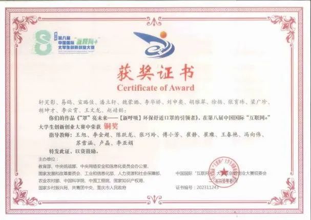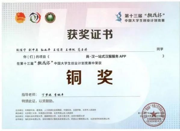 在校事迹:实用新型专利(服装样品展示装置),第十届石狮杯优秀奖