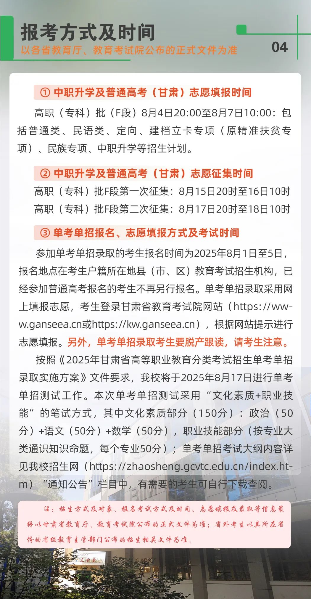 【权威发布】甘肃建筑职业技术学院2025年普通高考、中职升学考试及单考单招招生报考指南