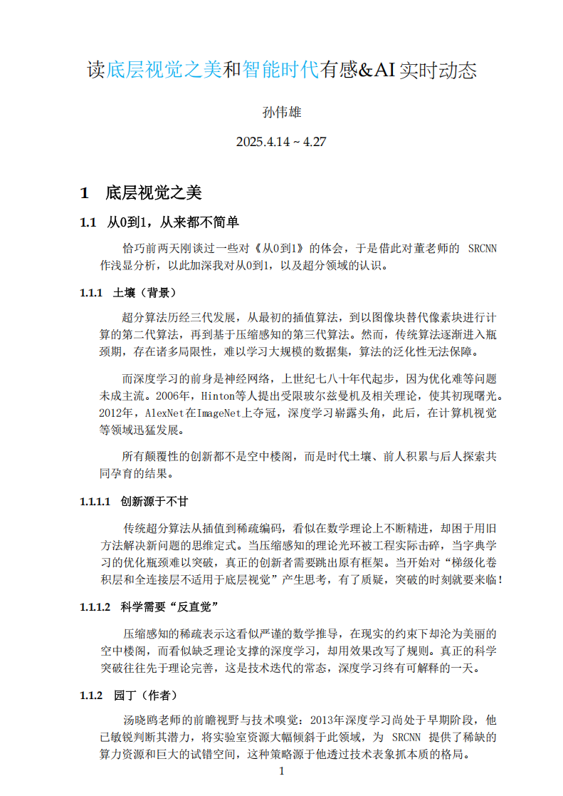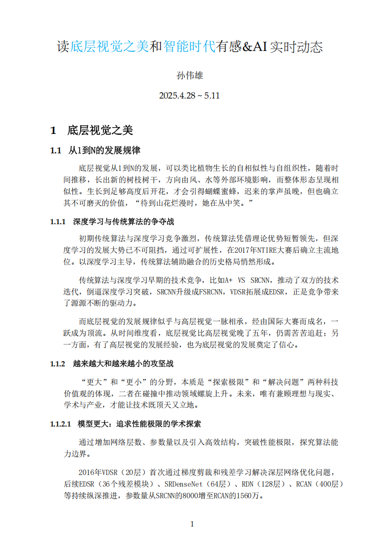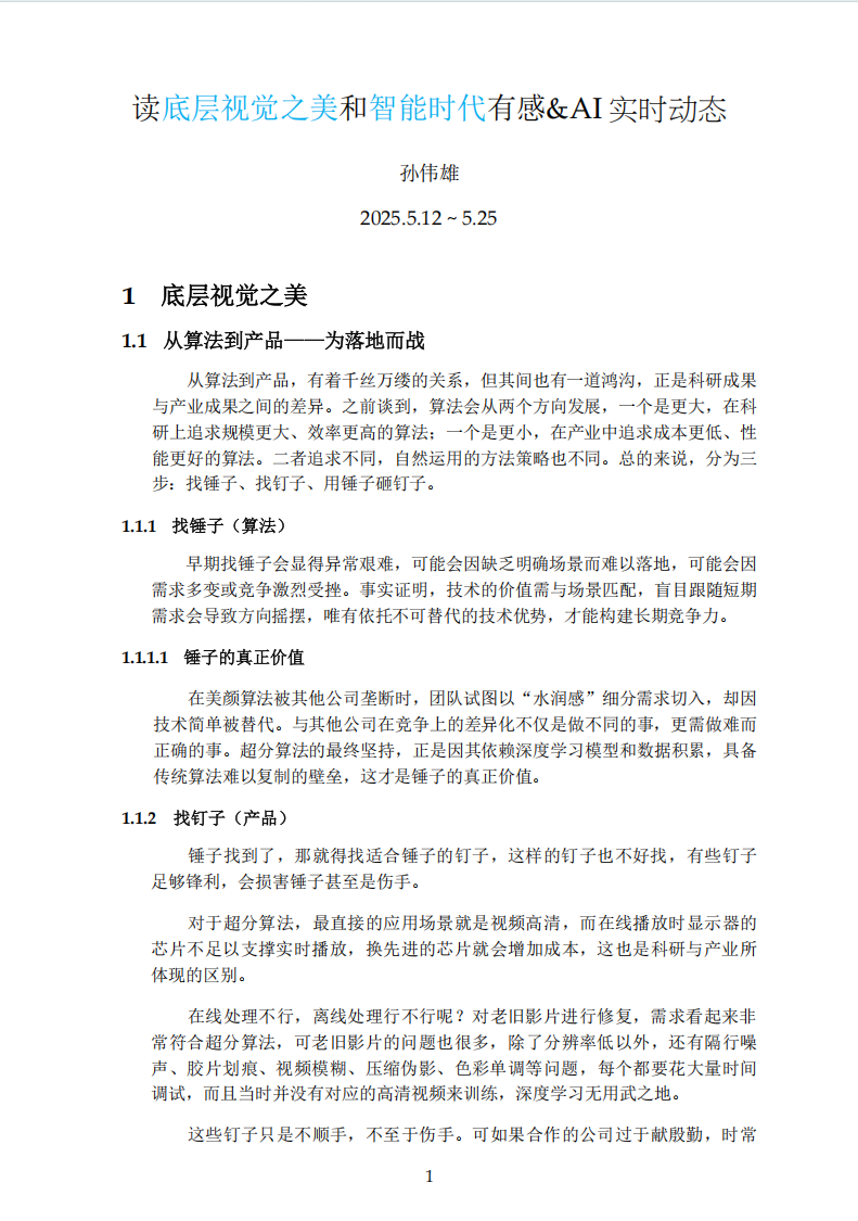 如今,孙伟雄正跟随学术导师董超老师做“计算机底层视觉”的相关研究。这项研究的直接应用包括复原老照片、将旧视频修复至4K高清画质,以及优化手机的数码变焦功能等。同时,孙伟雄也坚持研读计算机理论相关书籍,并将所学所思整理成读后感,不断夯实学术基础。