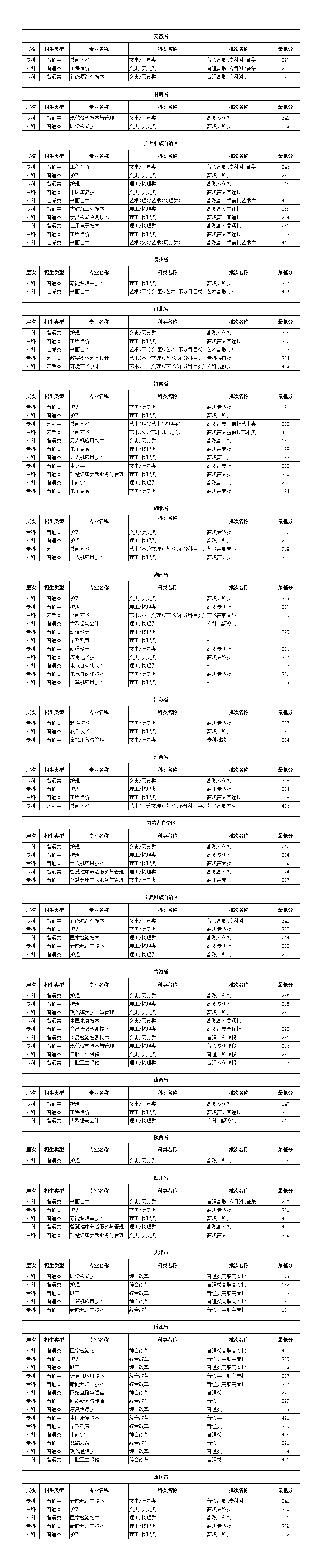 曲阜远东职业技术学院2024年外省录取分数数据一览表