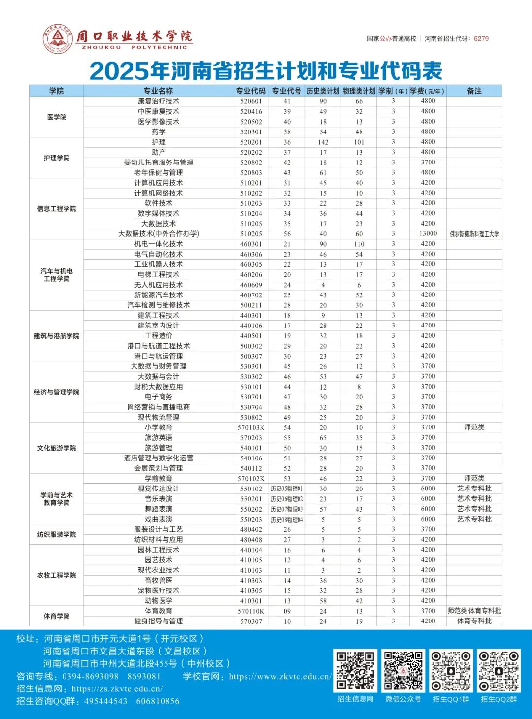 普通高考 报考指南欢迎报考周口职业技术学院,学校在河南省招生代码6279,国标码12750。河南省普通高职专科提前批、普通高职专科批、体育高职专科批、艺术高职专科批填报志愿时间:7月5日8:00-7月7日18:00。