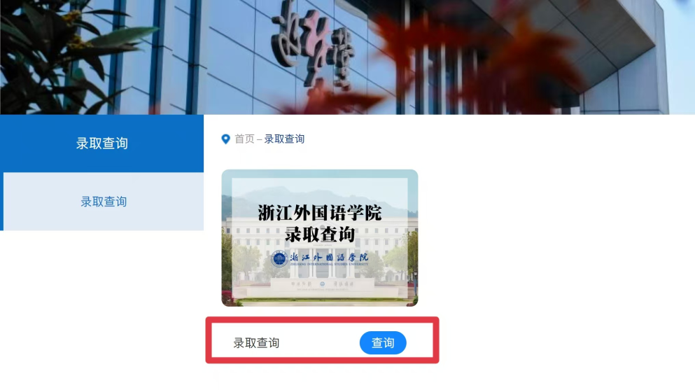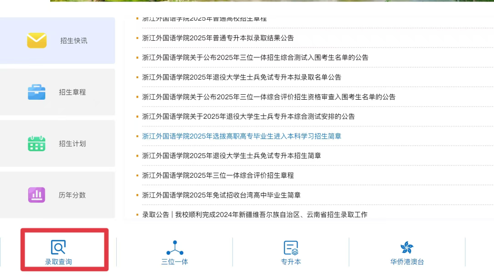 搜索“浙江外国语学院招生网”,进入官网,在左侧“录取查询”处输入身份证号和姓名即可。