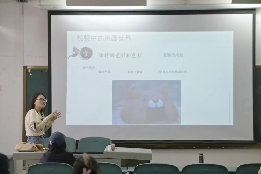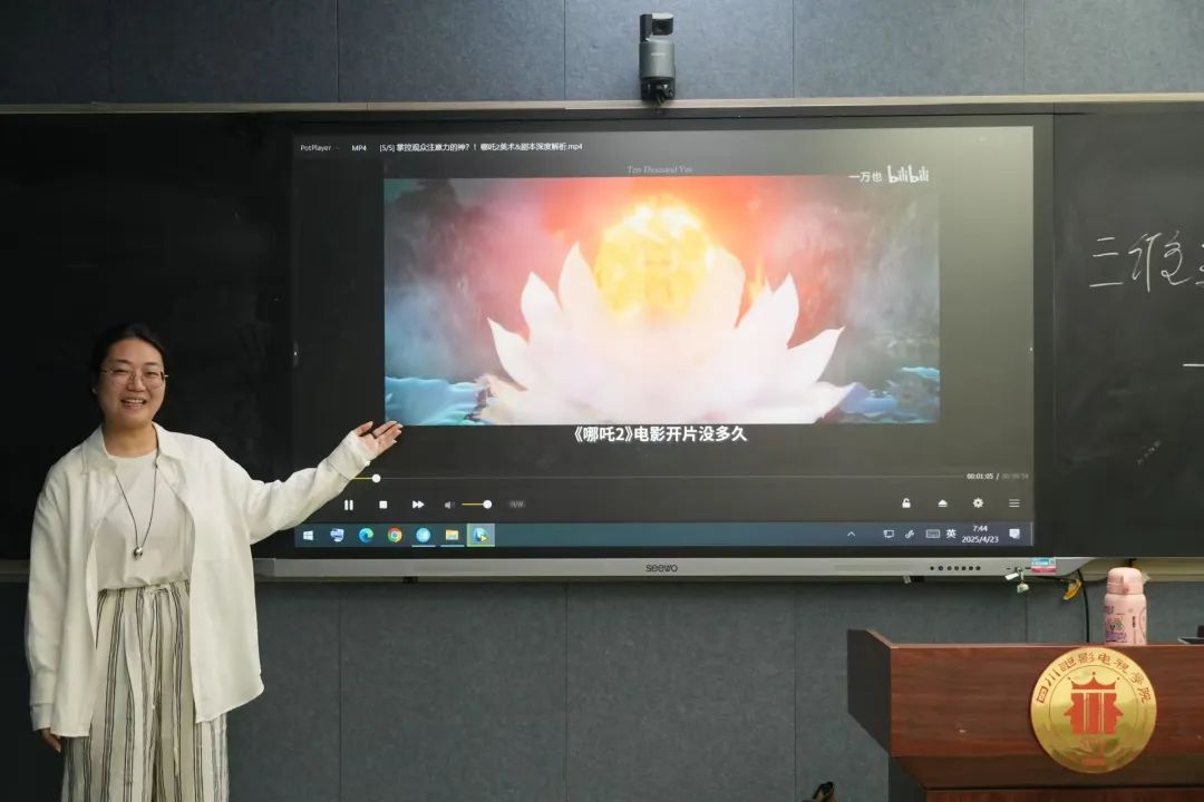 2025年4月23日早,陈雪老师在翰院241教室与同学们分享了哪吒的美术赏析。并从镜头美学、特效美学两个方面分析了镜头美学的特点,对称与平衡、黄金分割与引导线、景深设计、视觉的多样性和特效美学。引起了同学们的热烈讨论。