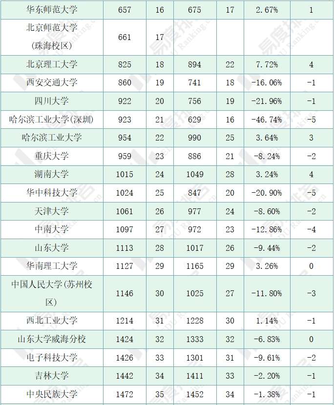 表 4 2024-2025年985院校投档位次波动(历史类)
