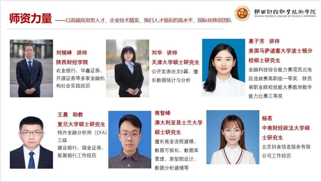 核心能力课:保险概论、个人理财、金融数据统计、证券投资理论与实务、金融营销、Python金融应用等。