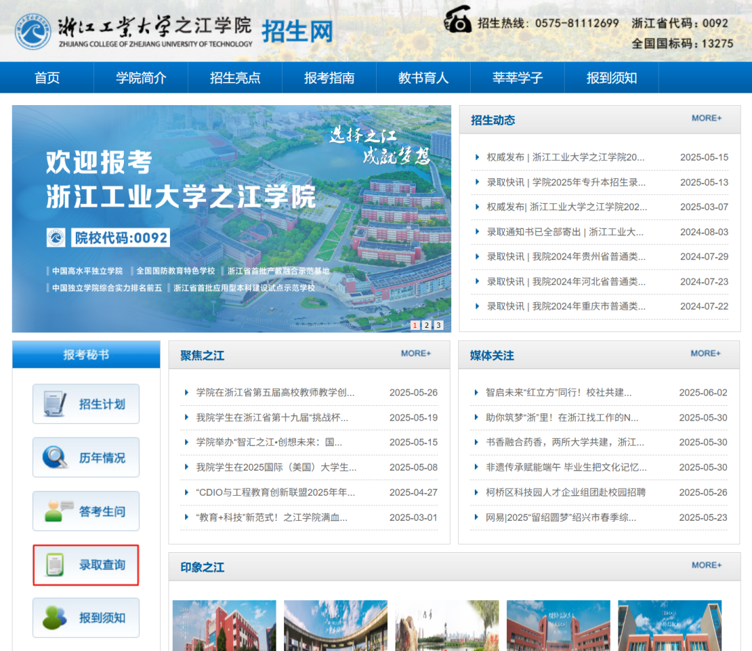 1.考生登录浙江工业大学之江学院招生网(https://zs.zzjc.edu.cn/);