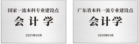 会计学科被列为广东省特色重点学科(2017年);会计学专业获批国家级一流本科专业建设点(2021年);广东省首批一流本科专业建设点(2020年1月);会计专业硕士学位授权建设点(2021年5月);拥有会计学专业省级课程思政团队、会计学专业省级教学团队;省级专业综合改革试点专业、省级国际会计(ACCA)人才培养模式创新实验区(2017年)、省级专项人才培养计划(国际会计人才培养卓越创新班,2021年)。