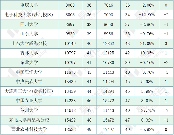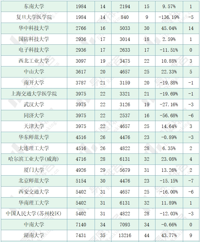 注:1.排名仅为985院校中的排名;2.除