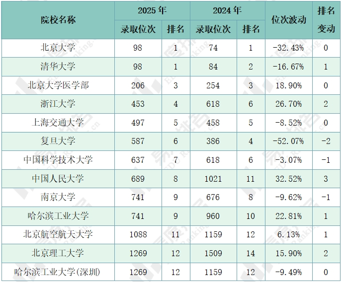 2024年投档位次异常偏低,2025年投档回归正常,使得投档同位分上涨幅度较大。如