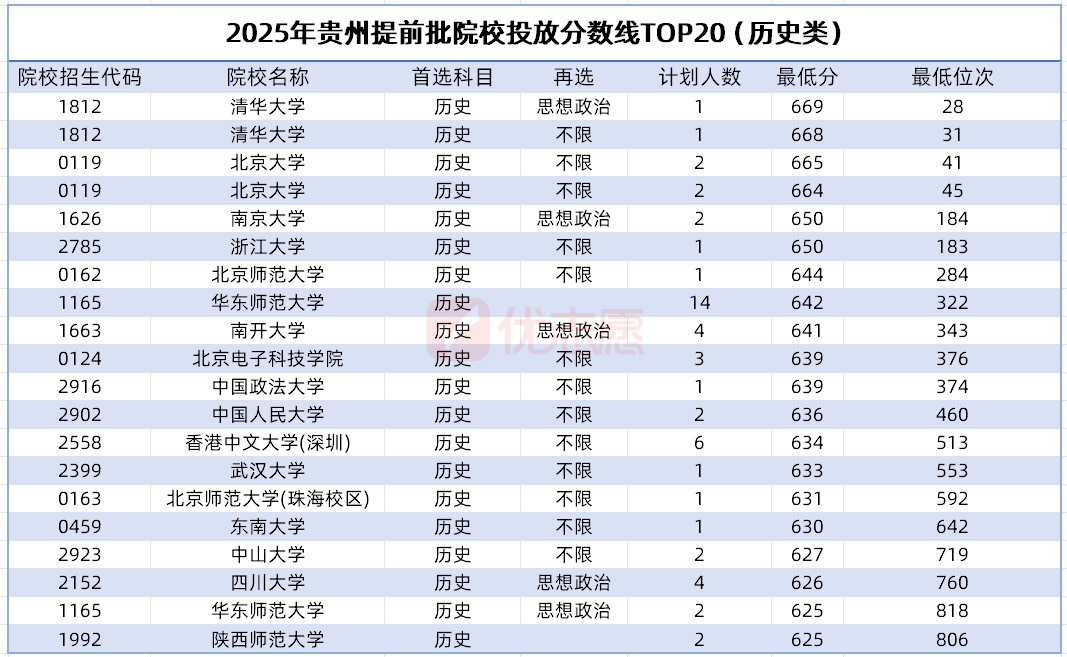 2025年贵州提前批投档分数线正式公布:多所院校凭借就业保障、政策红利及学科优势脱颖而出,成为考生与家长关注的焦点。北京电子科技学院以物理类630分、历史类639分的投档线稳居前列;贵州警察学院以公安类“规模领跑+专业集群”策略表现突出;北京师范大学延续师范类标杆地位,644分的断层式领先;广东海洋大学实现30分的涨幅,其背后离不开专业高就业率的推动。