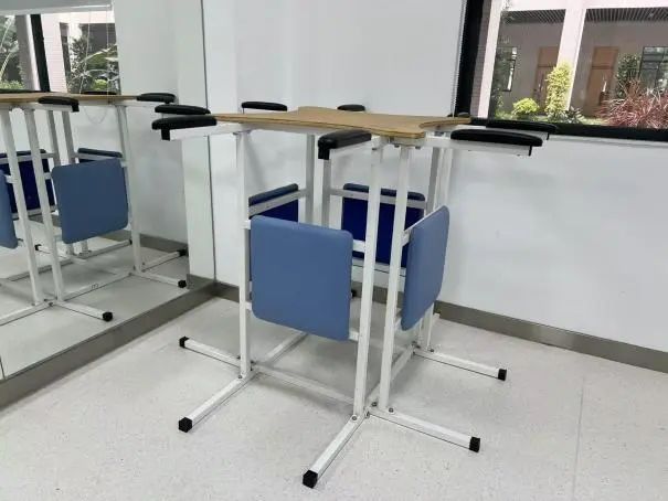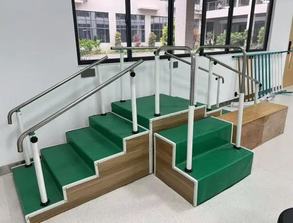 康复治疗技术实训室总面积160多平方米,可承担老年人生活能力康复训练等课程。实训分三个模块:运动、言语、作业疗法区、配有多功能训练器、平衡杠(配矫正板)、功率车、训练用楼梯、上肢推举训练器、髋关节、踝关节训练器等中大型运动治疗设备。为相关专业课程的开设提供了便捷。