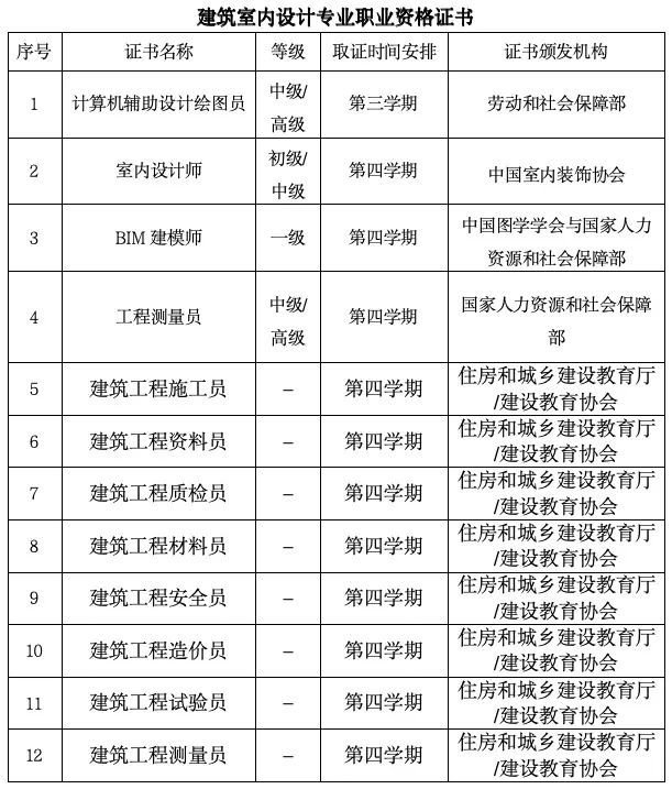 专业认证与职业资格证书:重视职业资格证书的获取,如制图员、建筑室内设计师、照明设计师、家具设计师等,为学生未来的职业发展提供支持。