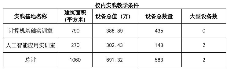 目前本专业校内实训基地总建筑面积1060平方米;设备总值691.32万元;总设备数585。校内实践教学条件如下表所示,实训场地见图所示。