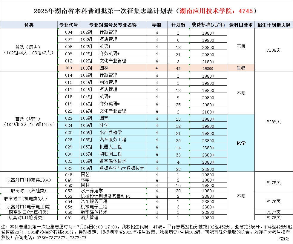 2025年湖南省本科普通批第一次征集志愿计划表(湖南应用技术学院:4745)