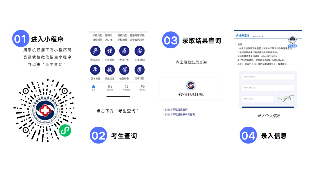 辽宁中医药大学杏林学院2025年全国普通高校统一考试招生录取工作预计将于近日进行(具体以各省招办公布为准),我校本科招生录取工作根据国家教育部、各省教育厅及各省招生考试院的相关工作要求进行,全面实施招生阳光工程,严格按照我校公布的录取原则及各省教育考试院下发的招生计划数进行,各省录取结束后,考生可通过学校官方网站及各省教育考试院官方网站查询本科统招录取结果,录取结束后统一发放盖有辽宁中医药大学杏林学院公章的录取通知书,最终录取结果以各省教育部门官方平台公布为准,请广大考生认真核实,谨防上当受骗。