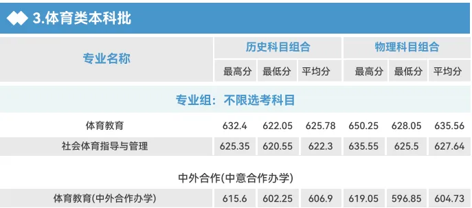 温馨提醒:以上分数为各省投档成绩。2024年录取情况仅供参考,不作为2025年录取依据。各省每年文化成绩、专业成绩分布较上年都各不相同,综合分录取最低分考生参考时要谨慎使用,建议可以根据各省综合分排名结合招生计划统筹参考。社会体育指导与管理专业在2025年暂停招生。