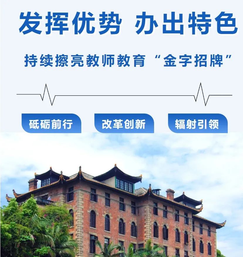 我校始终将培养高素质专业化教师作为首要任务,始终把引领福建基础教育高质量发展作为主线,不断强化教师教育传统“底色”和闽台文教交流时代“亮色”,被誉为福建基础教育“工作母机”。快来跟小魔莉一同了解我校如何发挥优势,办出特色,擦亮教师教育“金字招牌”吧!
