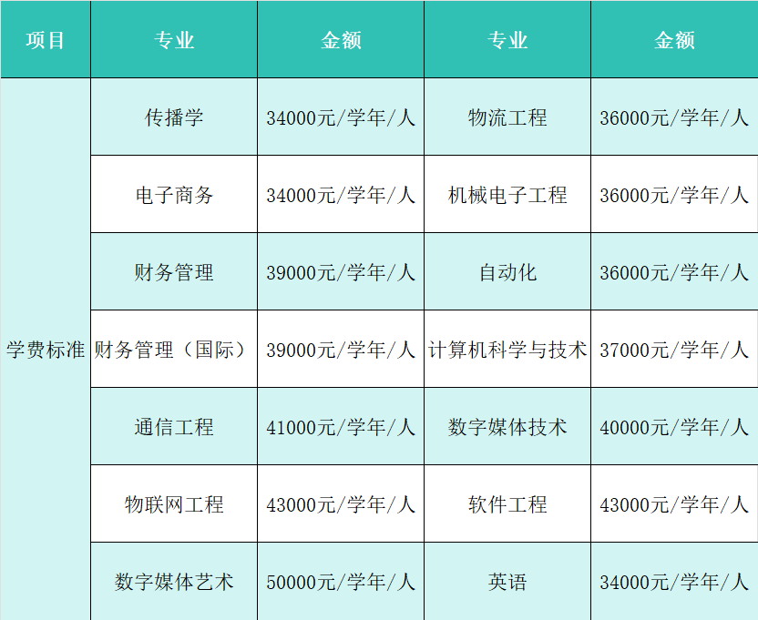 软件工程、物联网工程等专业收费合计:47593元/人;