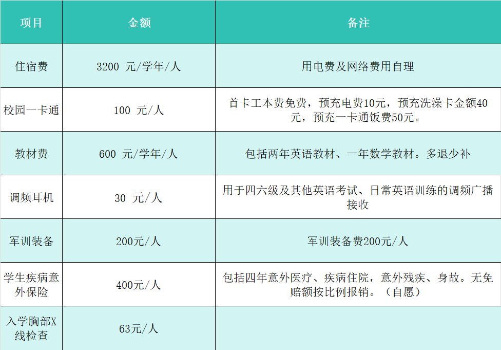 住宿费标准一律为3200元/人/学年。住宿费按学年(10个月)收取。