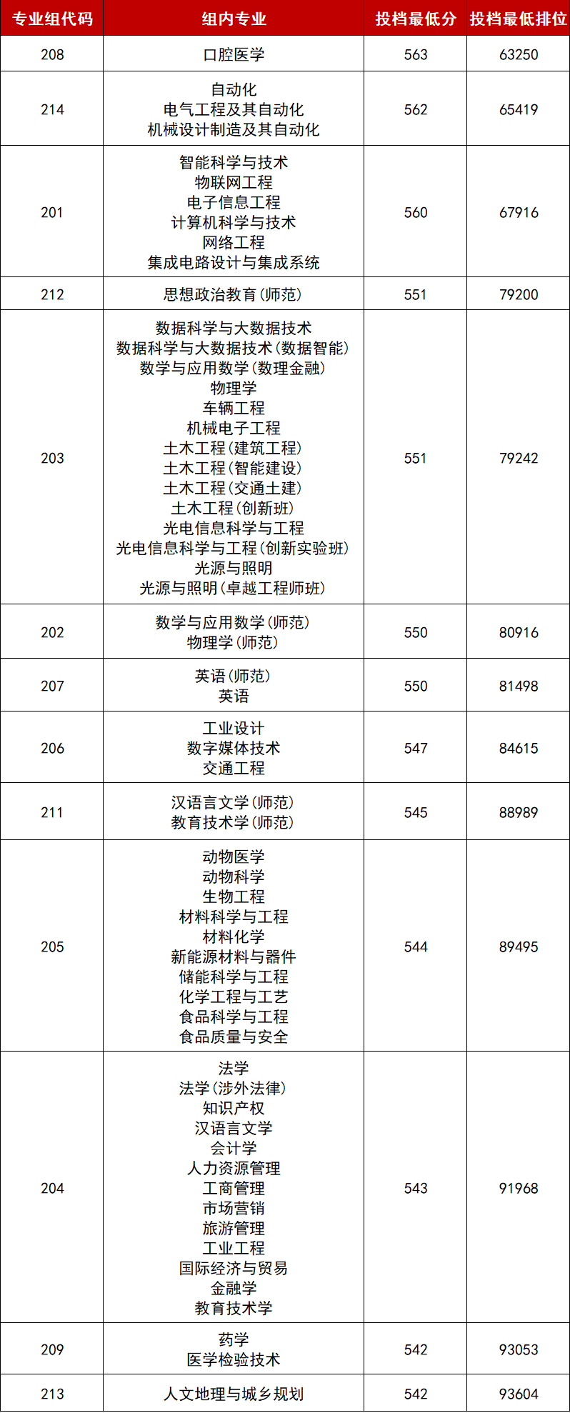 普通物理类最低投档分542分